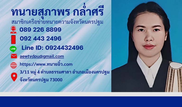 ทนายสุภาพร กล่ำศรี มือถือ: 092 443 2496
